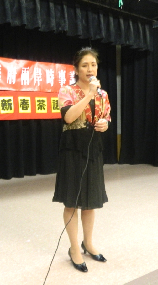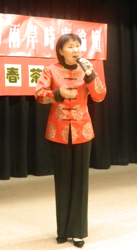 (和統會訊) 三月下旬的華府﹐蛇年新年剛過﹐陽光明媚﹐櫻花含苞欲放﹐一派春天的氣息﹐正是 朋友相聚的好季節。大華府兩岸時事論壇在馬州波多馬克社區活動中心又一次舉辦 了一場“新春茶話會”。八十多位社區朋友相約臨會﹐品嘗麥茶甜點﹐暢談僑訊友 情﹐欣賞藝術大家表演﹐渡過了一個格外溫馨而有意義的下午。 潘玲榮女士代表組織者首致開場白。她表示“華府兩岸時事論壇”除了不持立場﹐ 舉辦僑界關心的兩岸時事座談活動外﹐也舉辦有益于社區僑胞交流和聯誼的文化活 動﹐感謝和歡迎社區僑胞的支持和踴躍參加。 經過精心準備﹐這次茶話會共安排了18個節目﹐文藝高手雲集﹐歌唱﹑舞蹈﹑戲曲 和器樂演奏一應俱全。茶話會節目由論壇負責人沈同和何曉慧共同主持﹐由社區熱 心義工張雅媜女士擔任DJ﹐有序進行。 節目的開場由“藝齡”年輕卻充滿活力的“東北大秧歌歌舞隊”的秧歌和大頭娃娃 舞開始。熱烈歡快的音樂﹐鮮艷多彩的舞蹈道具﹐輕鬆活潑而又幽默的舞姿使得現 場立刻氣氛非常熱烈﹐逗得不少觀眾開懷大笑。 這次“時事論壇”有幸邀請到著名台灣客籍作曲家﹐演奏家﹐指揮陳建台先生表演。 陳建台先生為馬裡蘭大學教授和中美協會交響樂團指揮。由於陳建台在小提琴、指 揮、作曲等多項專業方面有很深造詣,又精通多樣民族器樂的展演,他的作品在音 樂界呈現出多元而豐富的特色。他不僅熟知西洋音樂,也在民族音樂﹑廣東客家音 樂和台灣本土音樂諸多方面有出色成就。雖然陳先生從未在如此“小”的舞台上展 示過才藝﹐但表示非常樂意參加這樣的兩岸僑胞相聚的活動和交流。陳建台先生當 場表演了西洋音樂和廣東客家音樂的小提琴演奏片段﹐供聽眾欣賞鑒別。然後演奏 了一曲由自己提供鋼琴音帶伴奏的小提琴演奏曲“奇異恩典”。委婉細膩充滿活力 的樂曲﹐高超的技藝給大家品嘗了一盅高水平的正宗文化甜點。 大華府黃河藝術團前團長郭能華在演唱歌曲《鼓浪嶼之波》前簡要介紹了該歌曲的 背景。這首歌曲是由鐘立民1981年在福建省音樂家協會歌唱海峽兩岸骨肉情怀的采 風活動時創作的﹐正因為其歌曲優美﹐又曾由李光羲﹑鄭緒嵐﹑張暴默﹑殷秀梅等 著名歌唱家都演唱過﹐使大眾非常熟知和喜愛。郭能華聲情並茂的演唱獲得了大家 熱烈的掌聲。 黃河藝術團的另一位前團長沈月亮首先和搭檔郭能華一起身著漂亮的維吾爾族民族 服裝為大家獻上了一首“花兒為什麼這樣紅”。接著﹐沈月亮為大家清唱表演了一 首由台灣著名詩人余光中的詩為詞﹐由自己已故父親﹐中國著名作曲家沈亞威先生 親自為之譜曲的一首歌曲“鄉愁”。月亮改詞將“新郎”取代了原歌詞中的“我在 這頭﹐新娘在那頭”中的“新娘”﹐含淚唱出了對父親的思念﹐也唱出了親人遠離 不能相見的濃郁的思念之情。聲情並茂的演唱打動了在場所有的觀眾。 大華府知名男高音儲洪發曾在天津外語學院﹐音樂學院學習和任職﹐並在美國Peabody Conservatory聲樂系深造。這次他為大家表演的是一首“橋”。他介紹說現在中國 大陸的發展真是日新月異﹐廣東珠海-香港-澳門三城市間將建成55公里的世界上最 長的橋。而中華文化和藝術的悠久歷史和媚力將對中美友好關係發展﹐對臺海兩岸 人民的交往產生巨大的作用。音樂人的作用就是文化“橋”的作用﹐希望有多一些 的這樣的“橋”使世界更和平更美好。他高亢嘹亮充滿激情的美妙歌聲嬴得了持久 熱烈的掌聲。儲洪發和“時事論壇”負責人潘玲榮還為大家表演了一首大家熟知的 蒙古族愛情歌曲“敖包相會”。 在戲曲節目方面﹐沈同先生沒有唱他的拿手老生唱段﹐改唱了一段戲歌“郊道”。 韻味十足的唱腔獲得了大家的高聲喝采。車欣女士則獻上了一段“沙家濱”中沙奶 奶的老旦唱段。由王曉紅﹐張玉華和黃衛表演的舞蹈“天天好時光”﹐以及加上潘 玲榮在內的四人舞“海派秧歌”為會場增添了更多歡快的氣氛。在歌曲方面女高音 歌手趙霞的一首“我愛你中國”和傅愛莉的“祖國﹐我的最愛”﹐女中音歌手雷思 源的一首“父親的草原母親的河”使大家享受了專業水準的聆聽。張雅媜原本就是 大華府著名女高音﹐這次除了現場主掌音響外﹐沒有讓聽眾失望﹐找吳惠秋搭檔給 大家表演了一曲“東方之珠”的二重唱﹐獲得了大家的掌聲回報。 張明文是來自台灣的大華府地區著名男高音歌手。茶話會上他為大家獻上的是台灣 歌曲“古月照今塵”。高昂嘹亮﹐鏗鏘有力的歌聲迴蕩在整個大廳﹐激勵人心的歌 詞“長江長千里﹐黃河水不停...莫負古聖賢﹐效歷朝英雄。再造一個輝煌的漢疆和 唐土!”唱出了聽眾的共同心聲。張明文介紹說﹐他來美國數十年﹐親眼看到華盛頓 地區僑社的變化﹐從原來以台灣來的僑胞為主到現在大陸僑胞越來越多﹐社區文化 生活也越來越豐富。他回顧說﹐兩岸僑胞在文化藝術上的合作從1994年“黃河藝術 團”的成立時期至今從未間斷過。1995年大華府地區僑胞聯合主舉辦的紀念抗日戰 爭勝利五十週年音樂會在華府乃至全美產生了巨大影響。之後這類活動常常舉行﹐ 暨活躍了華人社區﹐又提昇了華人形象。張明文表示看到兩岸關系的發展現狀非常 欣慰﹐衷心希望兩岸和平﹐永遠再無戰亂。 節目最