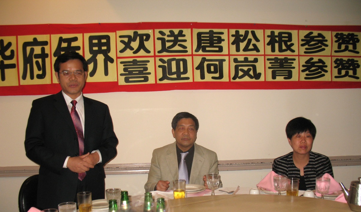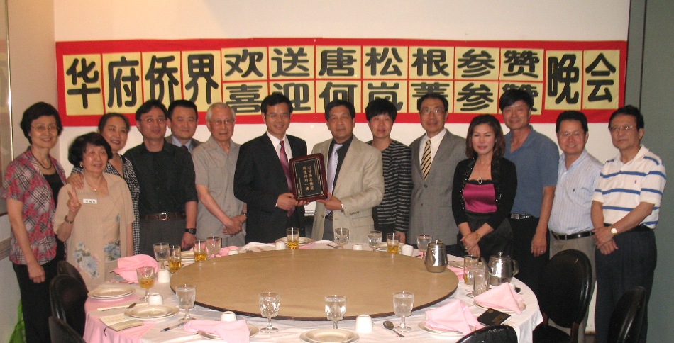(和統會訊) 5月21日華盛頓和統會的僑界朋友聚集在馬州新陶坊餐館歡送任期屆滿即將回國的中 國駐美國使館參兼副總領事唐松根先生,同時對新到任的何嵐菁參贊兼副總領事表 示歡迎。 華盛頓中國和平統一促進會會長吳惠秋博士主持了晚會。到會者紛紛提到三年前僑 界歡迎唐松根參贊的情景尤在眼前,唐參贊在任期內深入華人社區,廣結僑源,与 大華府地區兩岸僑胞建立了深厚的感情。轉眼唐參贊就要离開華府,大家不免份外 依戀不舍。 唐參贊隨即發表了臨別感言。他談到在任內正值台海兩岸關系進入和平發展的時期, 大華府地區的兩岸僑胞同心同力,為推動兩岸關系互利雙贏,鞏固來自不易的局面 作出了巨大努力,舉辦了多种形式的論壇和活動,作出了良多貢獻。唐參贊對僑胞 們作出的貢獻表示感謝,也表示要更用心做事,用心去推動祖國的和平統一大業。 唐參贊向到會的僑胞介紹了新任參贊兼副總領事何嵐菁女士,他介紹說何參贊不僅 有丰富的外交工作經驗,同時還曾在國務院台灣事務辦公室挂職工作過,對兩岸關 系非常熟悉,相信將會与大華府僑界廣結友情,也相信和希望大家能像支持他的工 作一樣去支持何參贊。何嵐菁參贊也表示愿意結交更多的僑界朋友,尤其是今年大 華府地區僑界要舉行紀念辛亥革命百年的活動,對兩岸關系的和平發展一定會產生 重要的影響和作用。 吳惠秋會長還向到會者通報了最近剛結束的全美中國和平統一促進會聯合會代表團 訪問台灣島內的情況。他介紹說全美和統會的各團体會員在很短時間里捐出了資金, 幫助高雄地區小林小學的教學恢复和災后重建。這次入島和小林小學王振書校長交 談,并親臨受災現場,感到台灣南部地區民眾的純朴和對災后重建的信心,受益匪 淺。吳會長還通報了即將在今年九月在華盛頓地區籌備召開“全球華僑華人促進中 國和平統一大會”和紀念辛亥革命百年活動的初步計划。 吳惠秋會長代表華盛頓和統會向唐松根參贊贈送了褒獎紀念牌,上書“心系兩岸僑胞, 胸怀神州一統”表示對唐參贊三年多來工作的高度肯定。華盛頓和統會創會元老沈 己堯夫婦,印鐵林博士參加了晚會,參加晚會的還有華專聯,同鄉會協會,大專聯﹐ 兩岸商會,美中工商會,旅美科協等多方面的僑界代表。歡迎活動后大家合影留念。 |