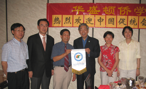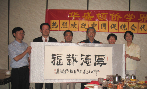中国促统会代表团向华盛顿和统会赠送礼品。